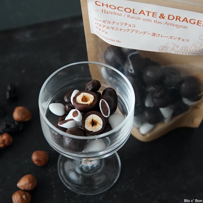 ●チョコ&ドラジェ(ヘーゼルナッツ、バスアルマニャック漬けレーズン※)