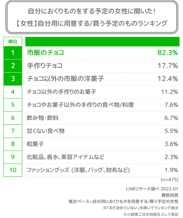 このたびLINEリサーチでは、日本全国の男女を対象に、今年のバレンタインの予定や、おくりものをする相手などについて調査しましたので、その結果をお知らせいたします。