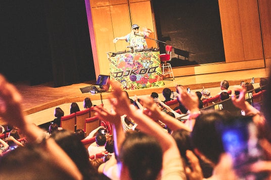 さらに、このスペシャルライブでは蛙亭・中野がイラストを手掛ける初グッズのマフラータオルの発売を予定。そのデザインを“1秒”だけ特別に公開すると、開場のDJタイムで振り回すのにもってこいなカラフルポップなデザインがチラッと見え、観客は大歓声。そこで気を良くしたDJ KOOは「もう2秒だけ!」と特別サービスしてくれました。DJ KOO公式YouTube「KOOTUBE」では、DJ KOOと中野の打ち合わせ動画を動画をアップ。ぜひチェックしてください。