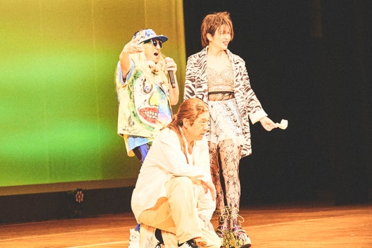 告知でライブも終了かと思いきや、「せっかくなので、もう1組スペシャルゲストに来ていただいております」と、告知されていないまさかの発言に客席がザワザワ。DJ KOOがDJブースに移動しTRF「EZ DO DANCE」をかけると、観客は何もわからないながらも自然と手拍子。そして、DJ KOOが「YU-KIー!」「SAMー!」と呼び込むと、しっかりと本人に似せてきたミラクルひかると原口の登場に会場中が割れんばかりの爆笑と喝采に包まれました。淡々と踊るYU-KI、会場を走り回るSAM、ツッコむDJ KOOという新たなTRFユニットに会場は終始爆笑の渦。観客も一糸乱れぬコーレスで応えてみせると、YU-KIとSAMは客席に降りる大サービス。本ライブ史上最高潮ともいえる盛り上がりで幕を閉じました。