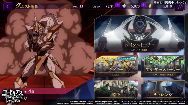 合同会社EXNOA(本社:東京都港区、CEO:村中 悠介、URL:https://games.dmm.com/)が運営するDMM GAMESと株式会社f4samurai(本社:東京千代田区、CEO:金 哲碩、URL:https://www.f4samurai.jp/)は、スマートフォン・PC向け新作ゲーム『コードギアス 反逆のルルーシュ ロストストーリーズ』のリリースから100日が経過したことをお知らせいたします。また、リリース100日を記念した機能追加、キャンペーンの開催をお知らせいたします。
