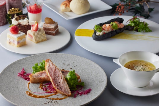 ホリデーシーズンを華やかに彩るデザートブッフェとお好みに合わせて選べる料理で、贅沢なひとときをお過ごしください。
