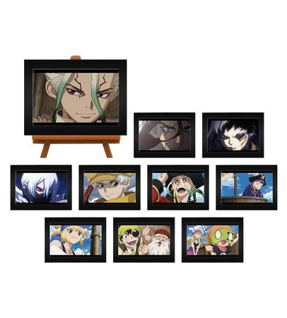 石神千空、獅子王司、あさぎりゲン、氷月、西園寺羽京、コハク、クロム、カセキ、ルリ、スイカの作中のワンシーンをメインにデザインしました。