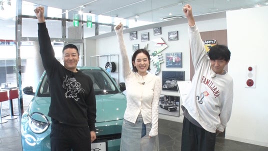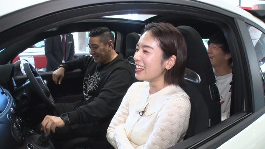 筧を迎えて一行が訪れたのは「フィアット/アバルト松濤」。スタッフの案内によって、人気車種や最新モデルを見たあとは、3人で目的地・小田原に向かってドライブします。