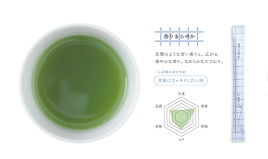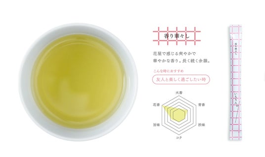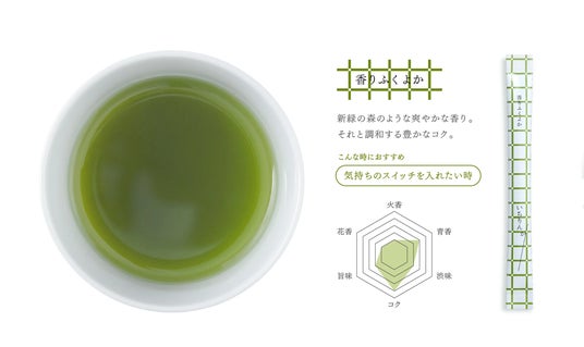 お茶の研究を続けてきたサントリーが、まったく新しいおいしさを追い求め、11年かけてつくり上げた「香り」を究めたお茶。日本茶の複雑で豊かな香りを愉しめる、ネオ・ティーパウダーです。その日の気分やシーンに合わせて香りを選びお湯を注ぐと、秘められたお茶の香りが、ふわり、花ひらく。パウダーがほどけるほどに心もゆっくりほどけていく。きれいな色、澄んだ味わい、ハッとするほど豊かな香り。五感のすべてを使って、どうぞ味わってみてください。飲み終わるころには、ほら。気持ちがちょっと前を向く。日常の一息は心ときめくひとときへ。ここから日本茶の愉しみが拡がっていきます。