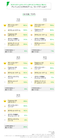 特に、10代、20代はポケモンに関連した様々なゲームをプレイしたことがある割合が他の年代に比べ高い傾向となりました。