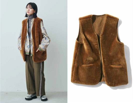 【NEW】MEDE19F リバーシブルフェイクファーベスト〈アンバーブラウン〉