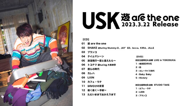 3月22日発売、遊助の12枚目アルバム「遊 are the one」の収録楽曲が明らかになった。今回の楽曲は全曲で13曲。既発曲は昨年9月にリリースした「僕らの時代」、サンプリングカバーシリーズから「浪漫飛行~君と逢えたら~」「遠く遠く~手紙~」の3曲のみで、残り10曲は今回のアルバムのために書き下ろした。注目の遊turing楽曲はすでに先行配信されてる「SHAKE 遊turing Mummy-D,JAY’ED,lecca,KIRA,JILLE」に加え、なんと大黒摩季が遊turingに参加してくれた。「トコナツ 遊turing 大黒摩季」は一足も二足も先に夏を先取りしたサマーチューンになっている。「トコナツ」もアルバム発売前に先行配信の予定だ。また、今回のアルバムは更にサプライズがある。上地等(BEGIN)提供楽曲「ただいままでおかえりまで」だ。遊助の第二の故郷でもある沖縄・宮古島を彷彿させる心落ち着くサウンドに包まれた心に染みるに楽曲に仕上がっている。こちら遊助のデビュー日でもある3月11日(土)に先行配信を予定している。本日は「カフェ・ラテ」が先行配信リリースされた(https://Yusuke.lnk.to/caffeWN)。男女の恋愛をカフェラテにたとえた遊助らしい表現が沢山詰まった楽曲だ。サウンドもミディアムテンポで聞き心地が良く、今までにない遊助の音楽が仕上がった。特典映像の収録曲も併せて解禁した。完全生産限定Aは地元横須賀のライブハウスで故郷を歌う楽曲達でセットリストを固めたアルバム購入者しか見れないライブパフォーマンスが収録(横須賀DRIVE、街、カレーライス時代、Baby Baby、History)。完全生産限定Bはアルバム収録曲からカフェ・ラテ、LION、ブランコのスタジオテイクバージョンが収録されている。そんなアルバムのプリオーダーも本日開始。早速予約してアルバム発売を待とう。そして、最新A写も公開した。入りきらないトランクに叫んでいる遊助。アルバムに込めた「我慢しなくていい」というメッセージがストレートに伝わる一枚だ。