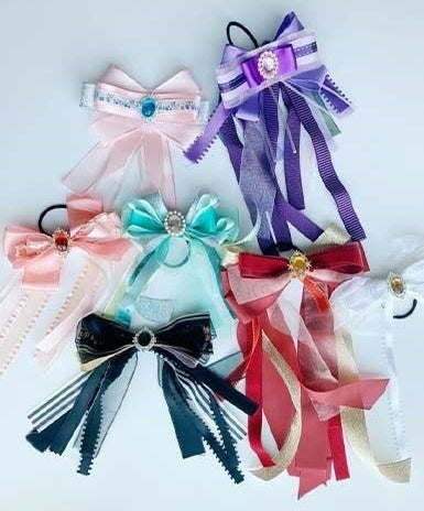 ※申し込み時に「リボン」の色を要指定。(色は1色のみ選択可能:赤、濃いピンク、薄いピンク、黄、緑、青、紫、黒、白 ※左記以外の色の材料は用意できません)