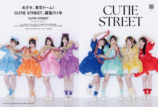 バックカバーで登場するのは、デビュー曲「かわいいだけじゃだめですか?」がバイラルヒットを記録し、「人生が変わった1年」と振り返るCUTIE STREET。「東京ドームこそ、私たちが次に目指す場所」という熱い思いを語ったほか、10Q(10問10答)では、「ロールモデルは?」「学生時代のキャラクターとCUTIE STREETの中での役割・キャラクターは?」といった質問を8人それぞれに実施。全16ページ合計2万字にわたって特集します。