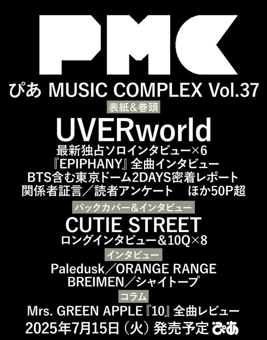 UVERworldが表紙を飾る『ぴあMUSIC COMPLEX (PMC) Vol.37』が、本日発売。