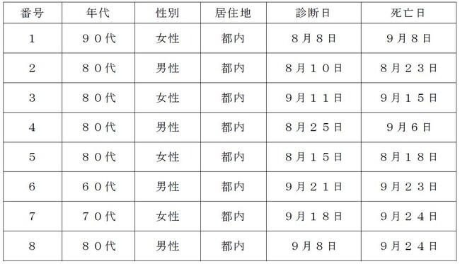 都内で新型コロナウイルスに感染した方が死亡されましたのでお知らせします。