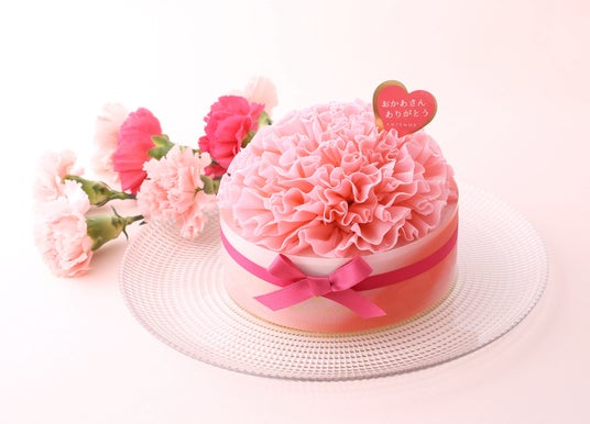 ホワイトチョコで形づくったカーネーションを苺と桃のさわやかなムースにのせて(4~6人用)