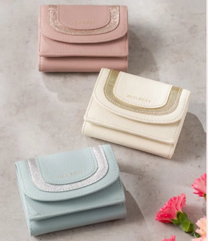 ソフトなシュリンク革に洋服のネックラインを思わせる曲線を施した、箔の革のキラキラがポイントの3つ折り財布です。コンパクトながらも収納力があり、すっきりとしたデザインは大切な人への贈り物にもぴったりです。