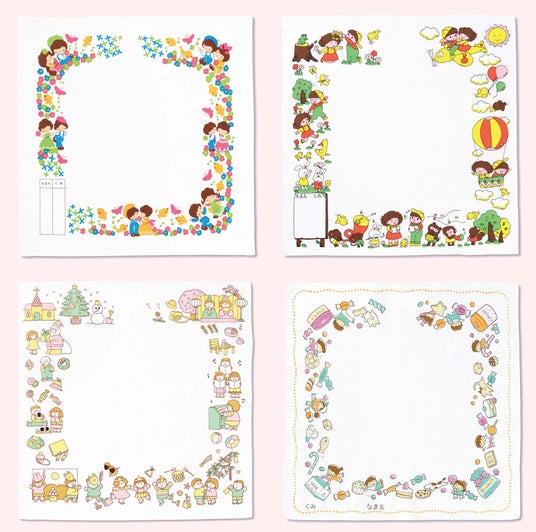 イラストの中央に園歌などを入れてオリジナルハンカチを作ることができます