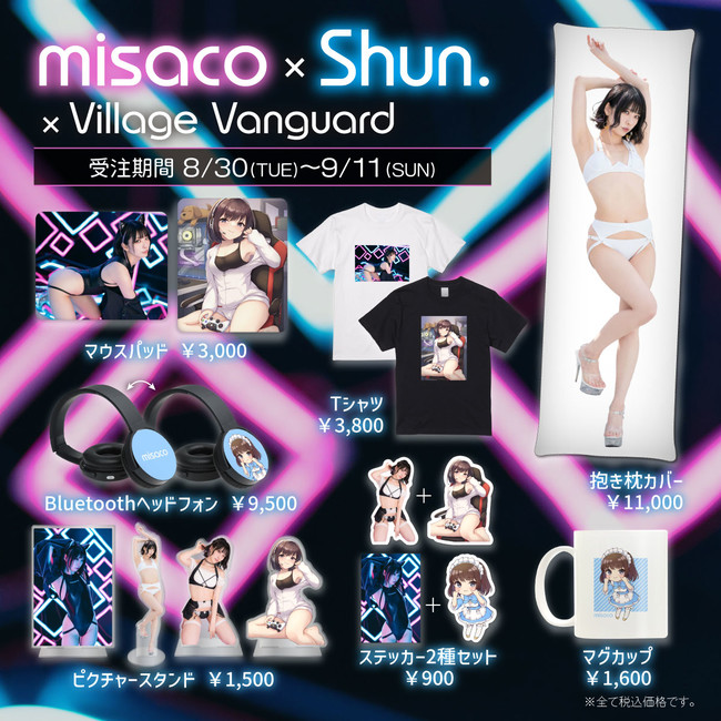 2022年8月30日(火)より、大人気コスプレイヤー【misaco】のグッズがヴィレヴァンオンラインストアにて発売決定!イラストデザインは人気イラストレーター【Shun.】による描き下ろしイラストを使用!そんな豪華コラボグッズは期間限定の完全受注販売ですのでお急ぎください!