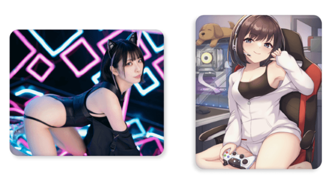 左から白水着/メイド/サイバーねこ/ゲーム女子(イラスト)の豪華4種類!