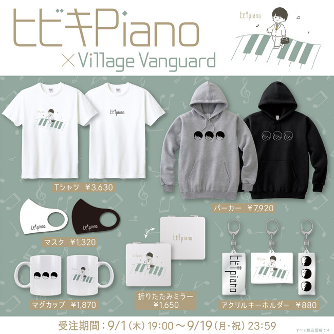 ヒビキpianoさんのお誕生日記念として、9/1(木) 19:00~ヴィレッジヴァンガードオンラインストアにて販売。