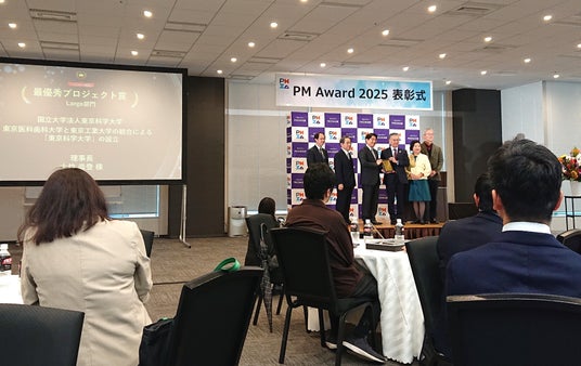 なお、今回の最優秀プロジェクト賞(Large部門)は、国立大学法人東京科学大学の「東京医科歯科大学と東京工業大学の統合による『東京科学大学』の設立」に贈られ、同じ国立大学法人として喜びを感じるものでした。