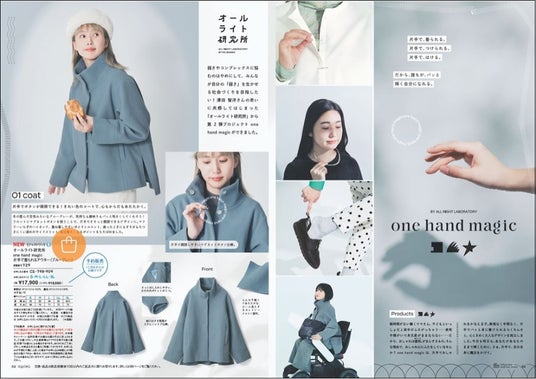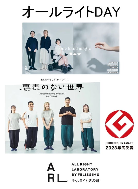 フェリシモが設立した、『マイノリティデザインー弱さを生かせる社会をつくろう』の著者、澤田智洋さんを“ゆる研究員”に迎え活動中の『オールライト研究所』は、初イベント、片手で着られて自分をパッと輝かせることをテーマとした「one hand magic」の新アイテム体験・試着会『オールライトDAY』を、11月8日(金)10:30~(四ツ谷)、11月9日(土)10:00~と11:30~2部制(原宿)で開催します。第2回目のテーマ「one hand magic」の研究成果として新登場したファッションアイテムに触れることができ・一部アイテムの試着ができるイベントです。片麻痺などの障がいを持つ人の意見を参考にしたインクルーシブなデザイン要素を持ち、片手でパッと身に着けられるらくちんさと大人なデザインを両立させたアイテムは、朝時間がない働く女性や子育てに忙しいお母さん、手が動かしにくくなってきた高齢の人にも役に立ちます。当たり前に感じていて気づかなかった“お困りごと”に気づき、その解消をして、誰もがストレスなくおしゃれを楽しむことができる新しい視点・体験があるアイテム7点に触れられます。裏表前後のない服を発表しグッドデザイン賞も受賞した初回テーマ「裏表のない世界」の新作を含む4点も併せて体験できます。