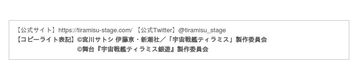 ◆主催:舞台『宇宙戦艦ティラミス銀遊』製作委員会