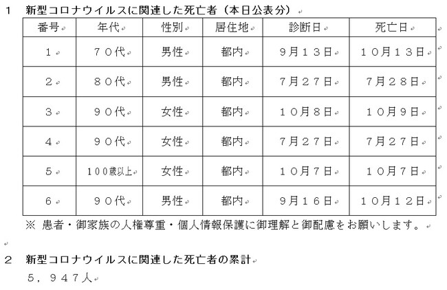 2022-10-17 東京都 新型コロナウイルスに関連した患者の死亡について Tweet ~新型コロナウイルスに関連した東京都からのお知らせ~ 都内で新型コロナウイルスに感染した方が死亡されましたのでお知らせします。 お亡くなりになった方のご冥福をお祈り申し上げます。 企業プレスリリース詳細へ PR TIMESトップへ 公式ツイッター Follow @Straightpress 最新情報をTwitterで受け取ろう! 公式フェイスブックページ 最新情報をFacebookで受け取ろう! 前の記事 一覧へ戻る 次の記事