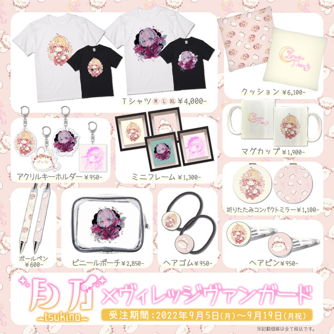 2022年9月5日(月)より、歌い手兼声優であり、イラストレーターでもあるマルチに活躍中の【月乃】さんのヴィレッジヴァンガード限定グッズが発売!デザインに使用しているイラストは月乃さんご自身のもの!今回のコラボのための描き下ろしイラストもたくさん使って、いつも持ち歩ける小物類から、生活を彩る生活雑貨まで、とーーーーーってもかわいくしあがりました!!!期間限定の完全受注販売ですのでお見逃しなく!!