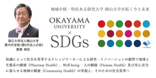 国立大学法人岡山大学は、国連の「持続可能な開発目標(SDGs)」を支援しています。また、政府の第1回「ジャパンSDGsアワード」特別賞を受賞しています。地域中核・特色ある研究大学として共育共創を進める岡山大学にご期待ください