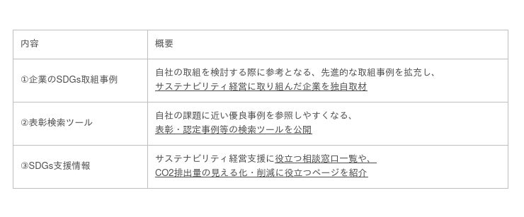 正式版リリースにおいて、従来のSDGsに関する学習記事や補助金情報等に加えて、独自取材記事など