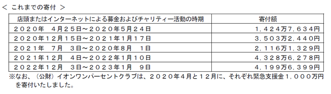 1.店頭募金 全国のイオンのグループ店舗 約8,000カ所
