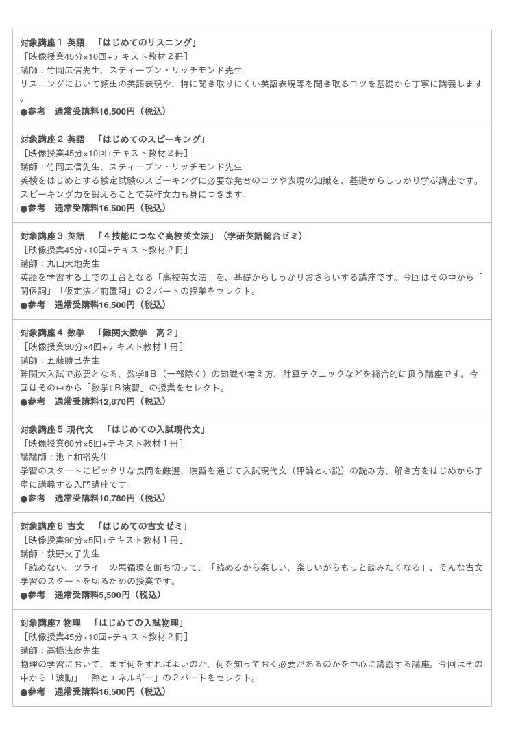 予備校界トップクラスの講師陣の授業を体験する絶好のチャンスです。大学入試合格に向けて、ここから一歩踏み出しましょう!