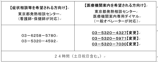 11月1日(火曜日)午前9時から、医療機関案内に特化した、「東京都発熱相談センター 医療機関案内専用ダイヤル」の電話番号を変更しますのでお知らせします。