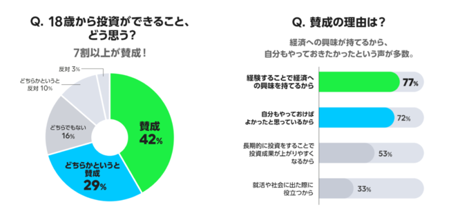 ・18歳から投資ができることに71%が賛成、経済への興味が持てるからが理由に