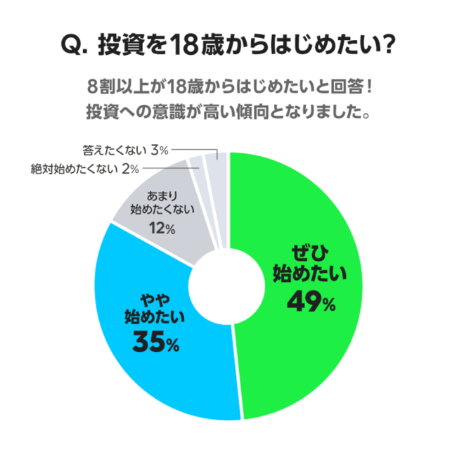 ・84%が「18歳から投資をはじめたい」と回答、投資に対する意識が高い傾向