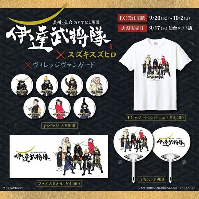 2022年9月17日(土)より、奥州・仙台おもてなし集団 伊達武将隊のヴィレッジヴァンガード限定グッズが仙台ロフト店にて発売開始!さらに、9月20日(火)には、オンラインストアでの受注販売も決定!