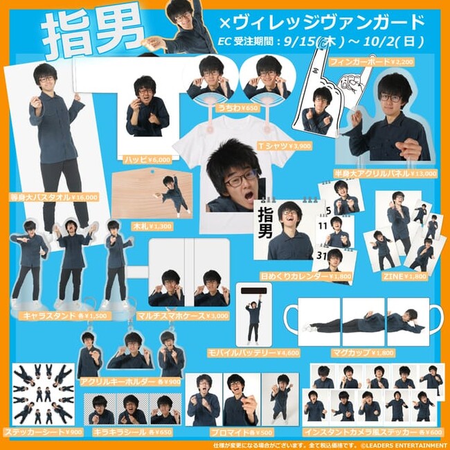 2022年9月15日(木)より、指パッチン奏者【指男】のヴィレッジヴァンガード限定グッズがオンラインストアにて完全受注販売決定!指男さん撮り下ろしの超豪華コラボグッズが誕生しました!今回のグッズをぜひゲットしてください!