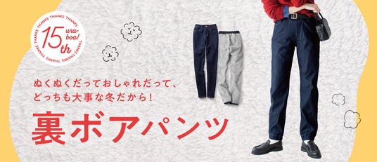 フェリシモが展開するファッションブランド「Live in comfort[リブ イン コンフォート]」は、パンツの裏側が全面ボア素材の「裏ボアテック(R)」であたたかい「裏ボアパンツ」シリーズ新作のウェブ販売を11月6日より行っています。ちょうどいいぬくもりを目指した「裏ボアライト」、定番の裏ボアベーシックパンツ、裏ボアワイドパンツ、裏ボアスニーカーが登場。最大¥1,000 OFFになる「まとめ買いキャンペーン」も実施中です。新カタログには、横澤夏子さんと佐藤栞里さんの裏ボアとかけあわせた「あったか対談」対談をアップしています。