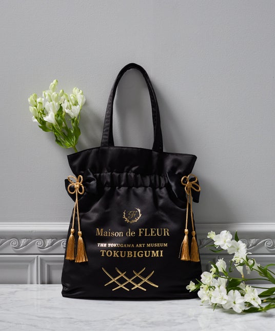 「Maison de FLEUR」で人気のダブルリボントートバッグを、光り輝く箔押しのロゴプリントやオリジナル柄の裏地でとくびぐみ仕様にしました。