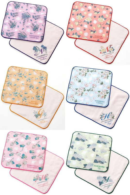 大人シンプルな刀剣のイニシャルと、モチーフをランダムにあしらった総柄のハンカチ2種セットです。