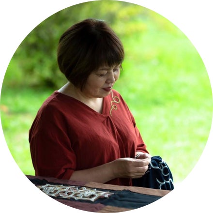 祖父母の代よりアイヌの文化や工芸にふれながら育ち、自然に心惹かれて木彫り、アットゥシ織、アイヌ文様の刺繍などの技術を身につけた。より多くの人たちにアイヌ文化の魅力を知ってもらいたいと、オールマイティに多彩な作品を手がけている。お客さまとの対面方式で作り上げることが多いため、その方のイメージやご要望に沿ったオリジナル作品が生まれる。伝統的な文様、技法を基にしながら新しいアレンジを加えたり、日常で気軽に使える小物づくり、味わいのあるポストカード制作などに精力的に挑んでいる。また、二風谷の文化を全国、世界へアピールして次世代へ繋げるため、二風谷の広報活動にも積極的に力を注ぎ、職人たちの思いや制作過程の難しさなども伝えている。「アイヌ文化の基本は、家族への愛。その思いがこもった作品でたくさんの人たちが喜びや幸せを感じてくれたら、うれしい」と語る。