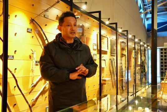 「STVラジオ アイヌ語ラジオ講座」の講師をはじめ、北海道各地の学校でアイヌ語を教える、関根健司氏の解説を聞きながら、博物館にてアイヌの文化や歴史を学ぶ。