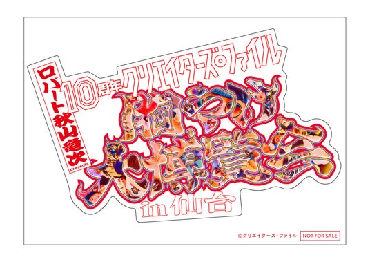 本展は、2017年~2018年にかけて全国10都市にて巡回開催し、約1年間で累計25万人を動員した展覧会「ロバート 秋山竜次プレゼンツ クリエイターズ ・ファイル祭」をより一層パワーアップ。胸やけ必至の濃厚でクリエイティブな数々の展示が目白押しな大博覧会です!物販会場では、展覧会キービジュアルがデザインされた記念グッズやアパレル・雑貨・カレンダーなどのクリエイターズ・ファイル公式グッズも販売いたします。