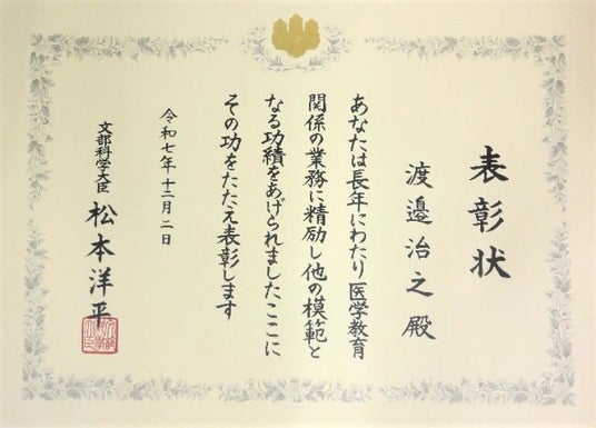 医学教育等関係業務功労者表彰状(渡邉技術専門職員)