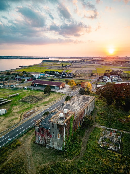 1938年に水上機の練習航空隊として発足した「鹿島海軍航空隊」。ほぼ当時の姿のまま廃墟化しており、全国でも珍しい戦争遺跡群公園となっています。その景観から近年ドラマ、映画、MVなどのロケ地として需要が高まっており、『ゴジラ-1.0』でも撮影場所として利用されました。