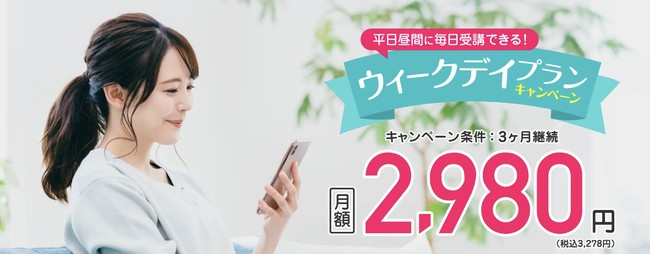 新たな年を迎え、1年の中でも最も学習をスタートする良いタイミングの今、平日の昼間に毎日オンライン英会話レッスンが受講できる「ウィークデイプラン」を、通常4,378円(税込)から3,278円(税込)に割引するキャンペーンを実施しております。