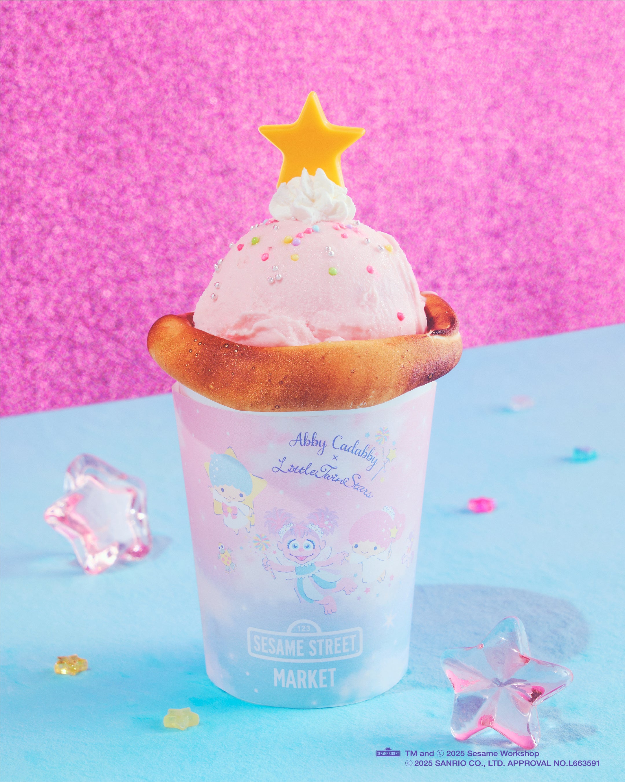 さらに、期間限定でセサミストリートマーケット池袋サンシャインシティ店のカフェエリアが、アビー×リトルツインスターズ一色になった特別なコンセプトカフェに大変身!店内装飾やフォトスポットなど、360度キャラクターたちに囲まれた、夢のような空間をご堪能いただけます。