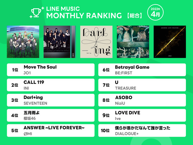4月の月間ランキング1位には、JO1「Move The Soul」が輝きました。