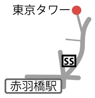 赤羽橋口から横断歩道を渡りENEOSサービスステーション右横の都道301号線を進み東京タワー下交差点を左折します→汐留駅から「浜離宮恩賜庭園」
