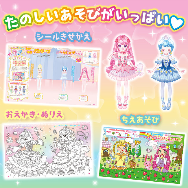 付録だけでなく、本誌も超豪華なおえかきひめ。3月号は、すてきなチュチュを着て大変身!「バレリーナにへんしんシールきせかえ」、スイーツひめ&ジュエルひめとおえかき・ぬりえが楽しめる「キラキラおえかき&ぬりえ」、春のいちごばたけでちえあそびに挑戦!「いちごばたけで見つけて♪」など、楽しい記事が盛りだくさんです。