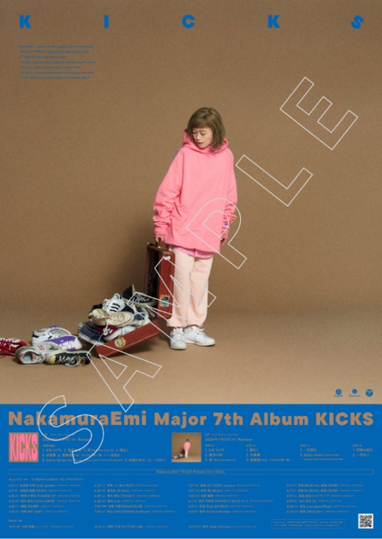 #NakamuraEmiKICKS のハッシュタグと、NakamuraEmiのオフィシャルアカウントをタグ付けしてご自身のX、Instagram(フィード・ストーリー・リール)にポスターを貼った様子を投稿していただくと、抽選で5名様に実物の直筆サイン入りポスター(B2サイズ)をプレゼントします。 お店やオフィスに貼ったり、個人でご自宅に貼るのももちろんOK。